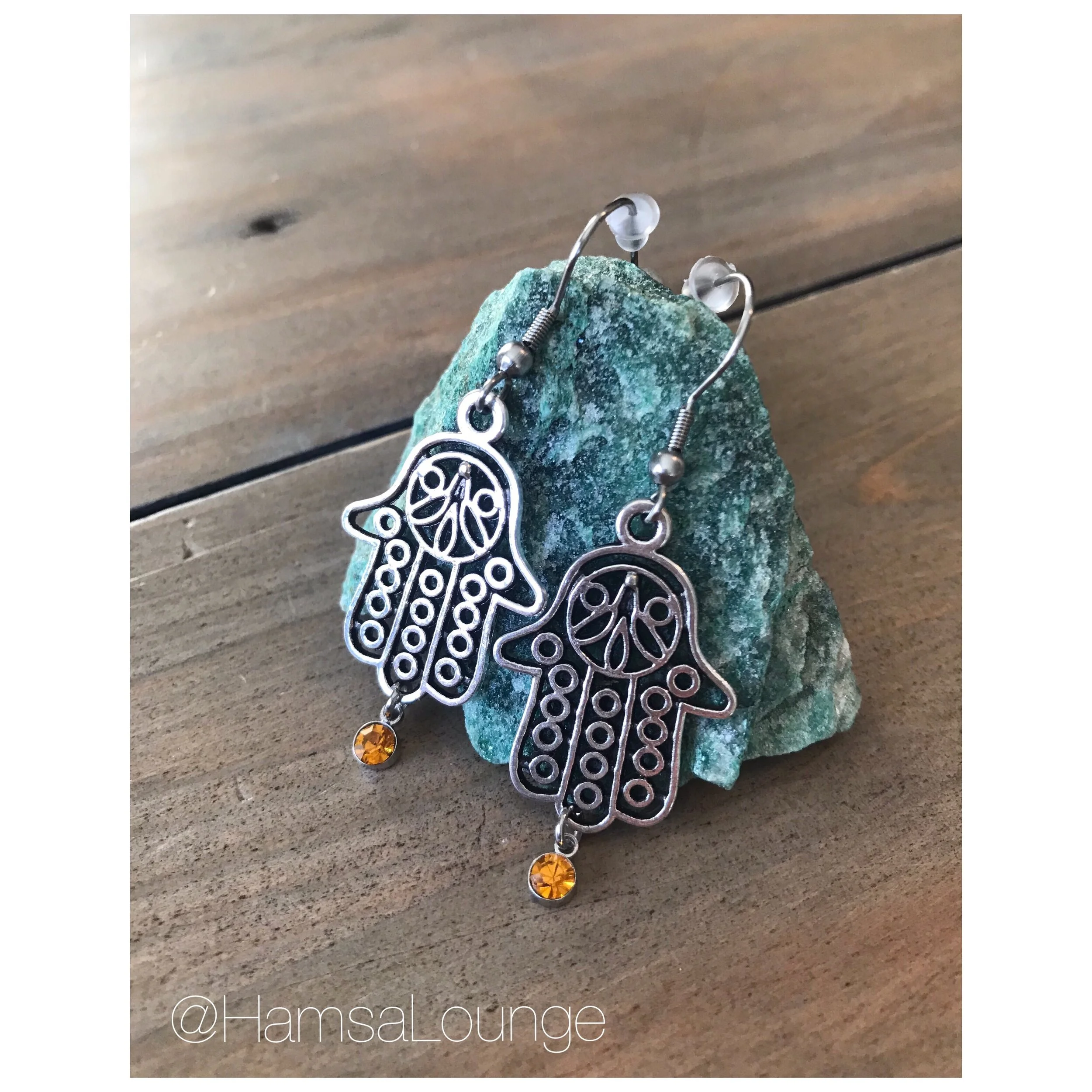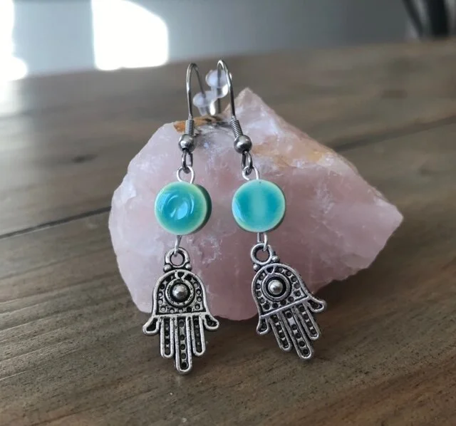 each pair of handcrafted hamsa lounge drop earrings are infused with loving energy & positive vibrations.